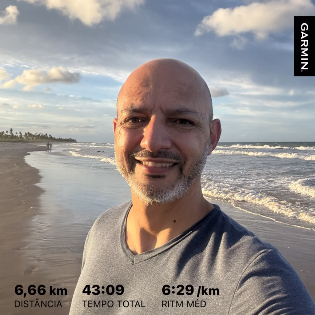 Treino de corrida regenerativa em ritmo leve na beira mar.